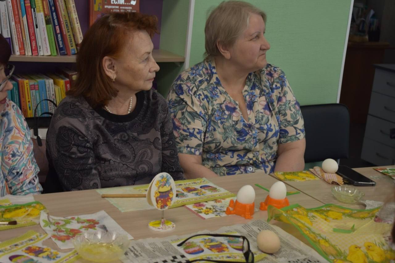 В Центральной городской модельной библиотеке на очередном заседании клуба садоводов «Саянская радуга» прошёл мастер-класс по украшению пасхальных яиц техникой декупаж.