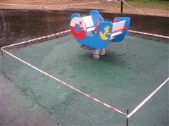 В зоне отдыха у фонтана, где устанавливаются новые детские комплексы, 6 августа началась заливка площадок под игровыми конструкциями специальным травмобезопасным покрытием. Однако горожане уже успели его нарушить, несмотря на то, что территория была обнесена тройным рядом заградительной ленты.