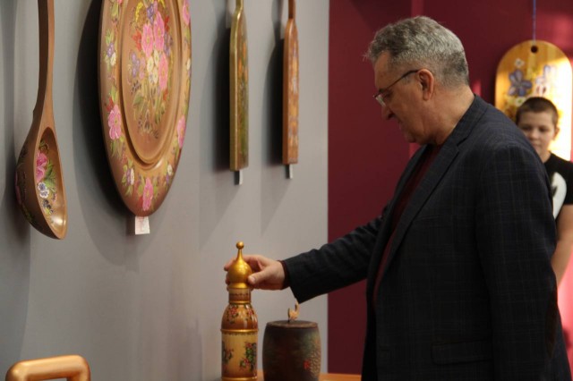 В рамках визита состоялось открытие выставки мастеров. В Картинной галерее представлены предметы быта и культуры, передающие традиционный русский колорит и переносящие зрителей в мир сказочных лесов и бескрайних просторов Сибири.