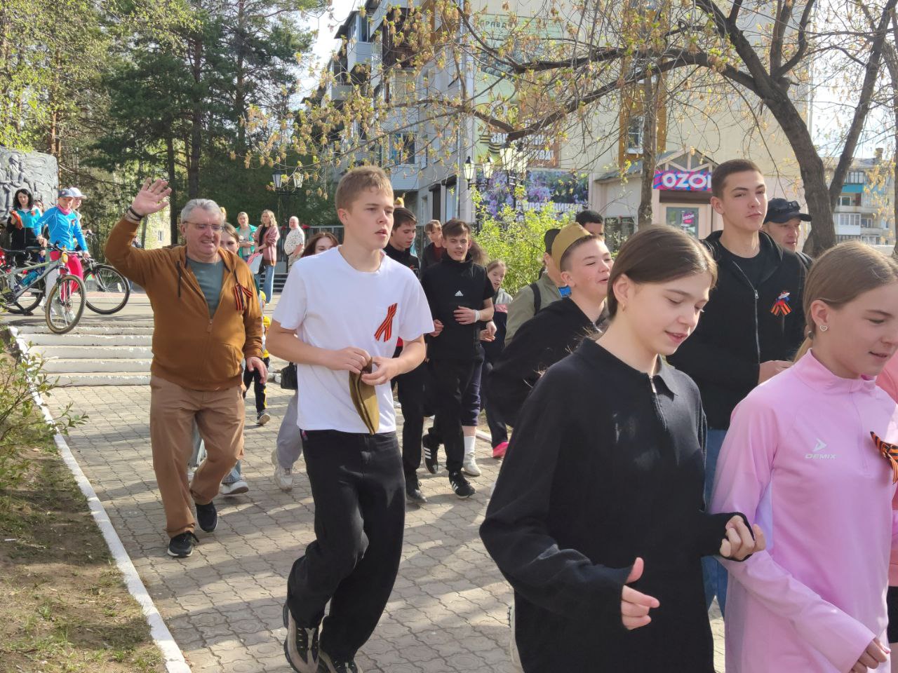 Для участия в мероприятии саянцы собрались в сквере имени 40-летия Победы, где перед стартом мероприятия исполнили знаменитую песню военных лет "Катюша".