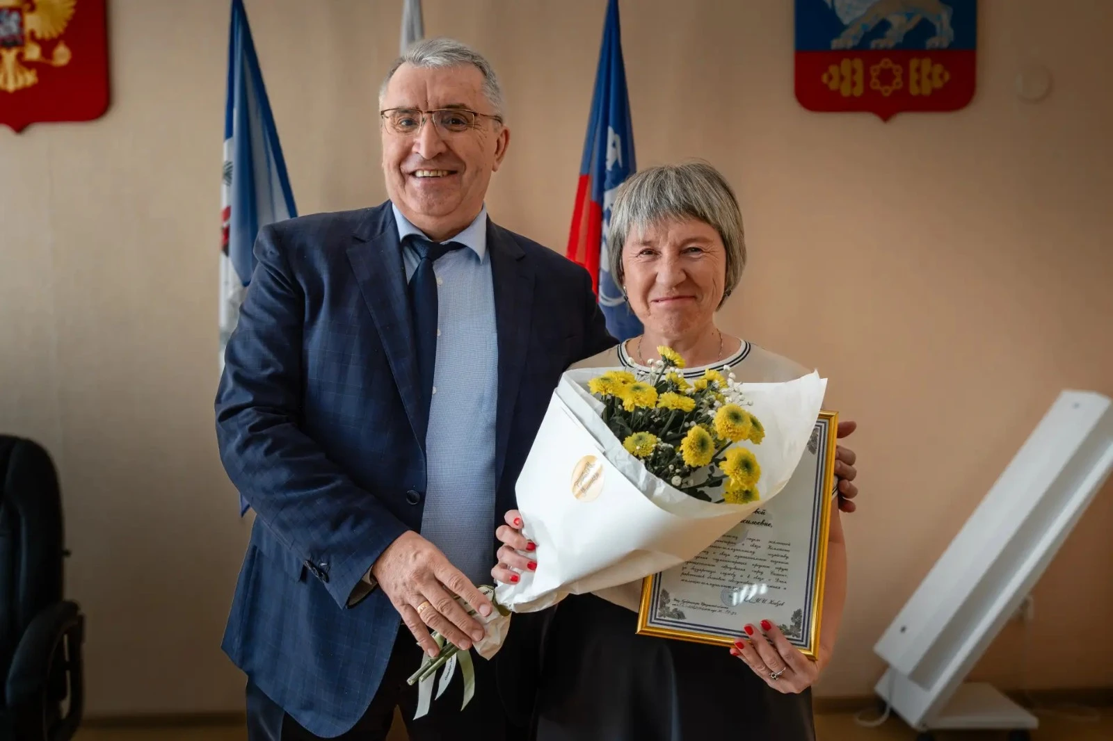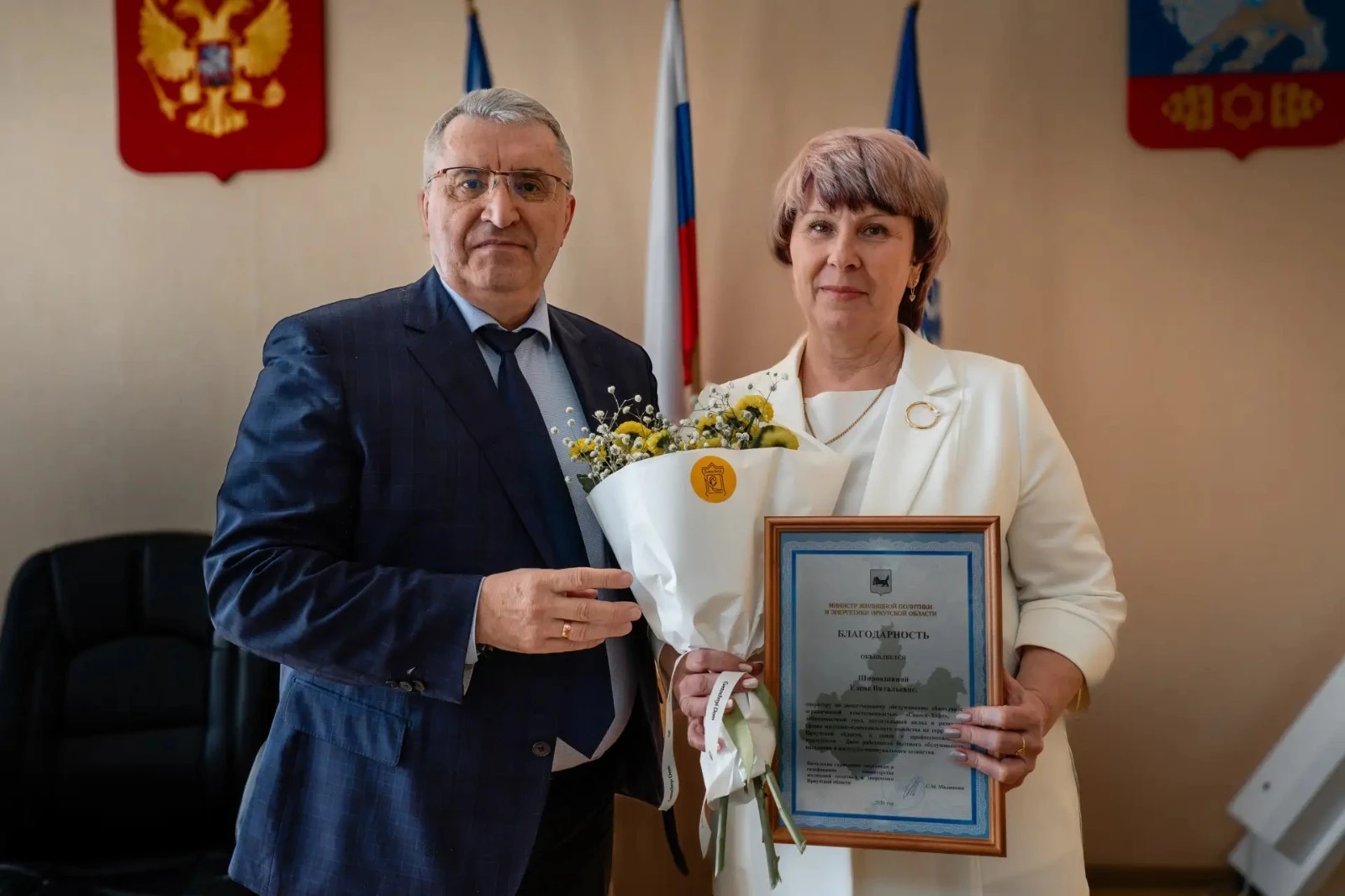 Сегодня мэр города Александр Владимирович Ермаков вручил Благодарности Губернатора Иркутской области Игоря Ивановича Кобзева четверым специалистам сферы бытового обслуживания и жилищно-коммунального хозяйства Саянска за многолетний труд, высокий профессионализм и безупречную работу.