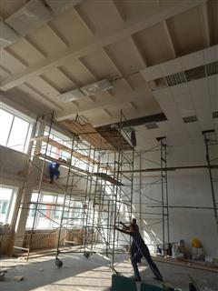 Ремонт в актовом зале школы № 4 – в самом разгаре. В понедельник, 24 августа, работники ИП Сигитовой Т.А. занимались установкой подвесных потолков и светильников. Мастера ведут работы одновременно в нескольких направлениях – они расширили сцену, зачистили от старой краски стены, загрунтовали их под оклейку обоями, занимаются установкой современных дверей.