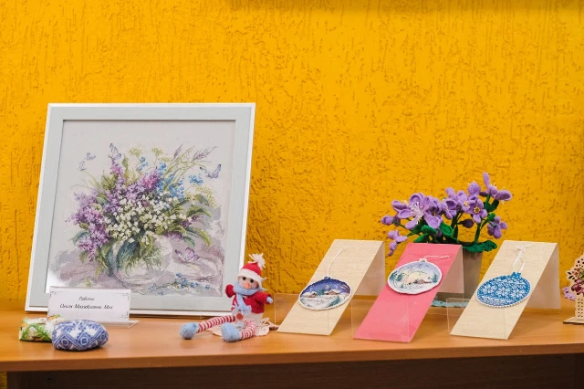 Выставка будет действовать еще месяц. Гости Центральной библиотеки смогут увидеть авторские куклы, вязаные игрушки, картины из бисера, предметы одежды и другие произведения.