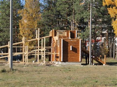 До наступления Нового года осталось не так уж много – всего два с половиной месяца! На территории Снежного городка продолжаются работы по строительству деревянной горки. Некоторые участки уже покрыты специальным огнезащитным составом и окрашены.