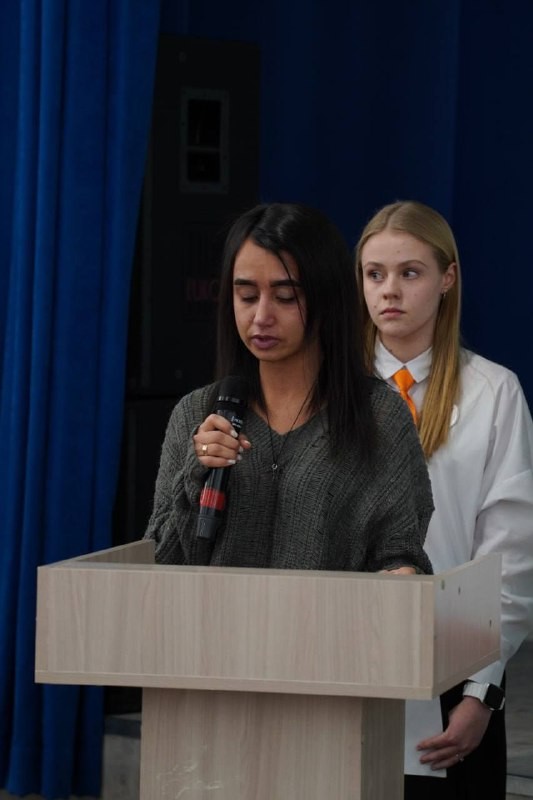 Школа № 8 была выбрана неслучайно: в ее стенах учится сын бойца. На торжественной линейке присутствовала вся семья Александра Десова.