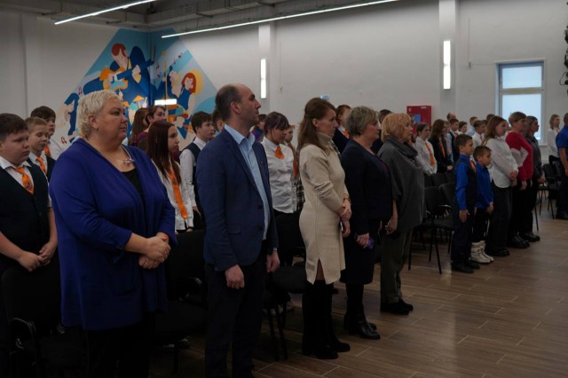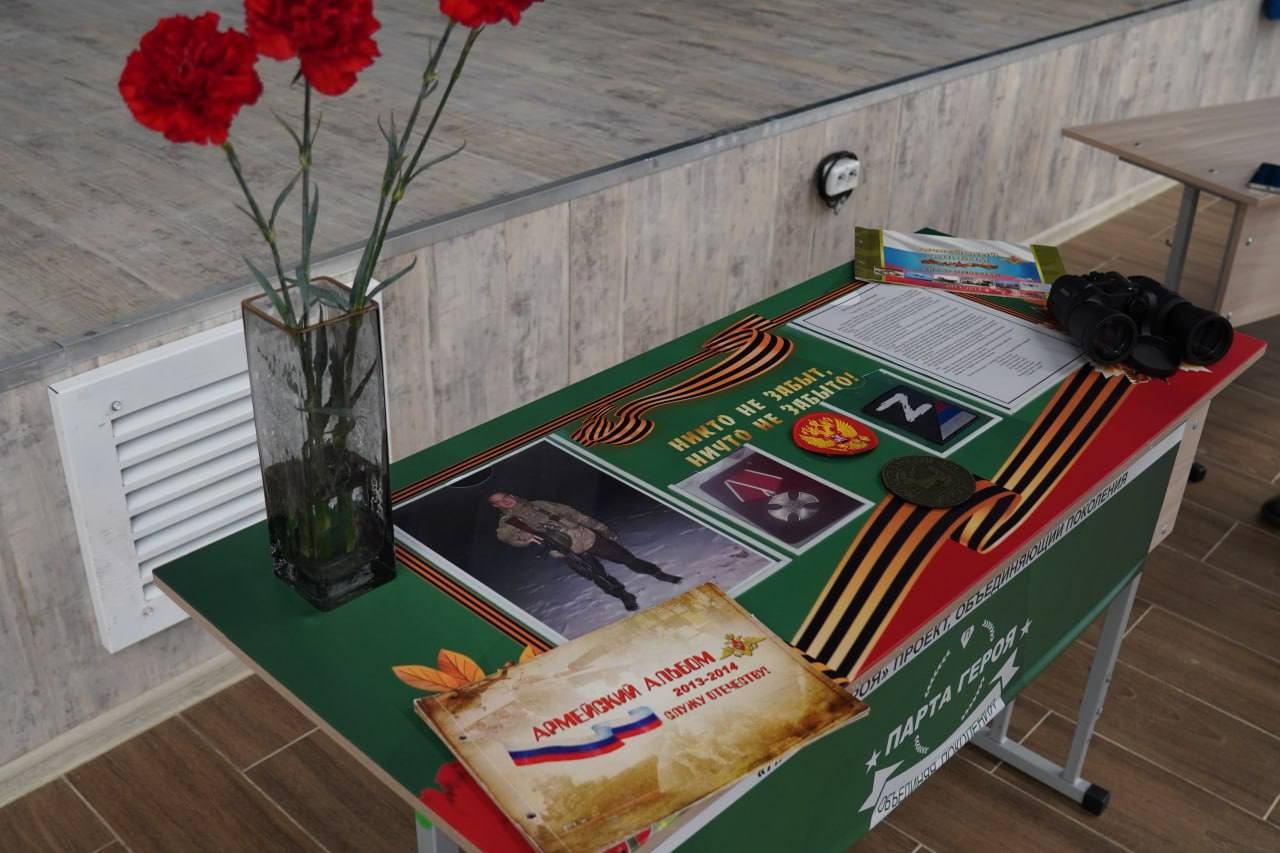 В актовом зале состоялось открытие Парты Героя, посвященной Александру Десову, участнику специальной военной операции, погибшему в зоне боевых действий.