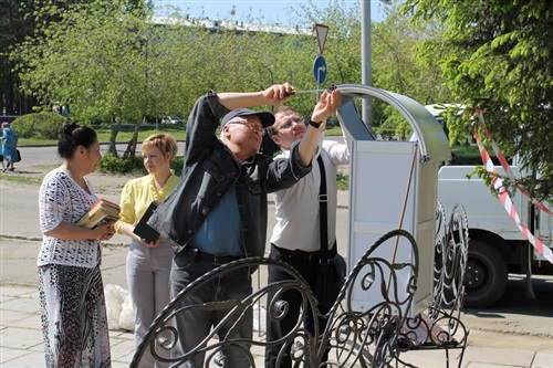 Саянско-зиминское землячество приобрело в дар городу очередную группу скамеек с коваными спинками. Свой безвозмездный вклад в устройство площадки внесли работники СМУ-50 (рук. Н.А.Борисов), они проводили монтажные работы и бетонирование малых форм. Компания «Линия окон» изготовила и установила симпатичный уличный шкаф с открытыми книжными полками, что выглядит очень необычно! Работники библиотеки (еще не успел «схватиться» бетон) уже поместили на его полки первые книги. Любой желающий, заинтересовавшийся книгой, может взять понравившуюся ему, а взамен, при желании, оставить свою. У саянцев может появиться новое увлечение. Имя ему – «буккроссинг», по-русски «книгообмен». Как пояснила методист библиотеки Н.М.Мальцева, книгообмен пользуется популярностью в нашем городе: «Вот уже много лет библиотеки занимаются организацией буккроссинга «Прочитал сам – передай другому», аналогичный пункт действует в медсанчасти. Наверняка у каждого есть заветная полочка, где стоят и пылятся книги вроде бы и хорошие, но уже прочитанные. Дома они ни к чему. Поэтому предлагаем поделиться книгами с другими, воспользоваться новым увлечением и совместить его с отдыхом на свежем воздухе».