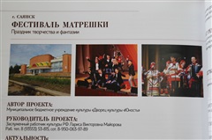 В итоге саянский проект «Фестиваль матрёшки – праздник творчества и фантазии» вошёл в число 36-ти победителей. Все они, а это в основном иркутяне, были приглашены на Праздник белого цветка. Там победители представляли свои идеи иркутским бизнесменам, чтобы они выбрали и поддержали заинтересовавший их проект. Л.В.Майорова нашла поддержку М.А.Сигала, за что выражает ему огромную благодарность. Меценат готов выделить на организацию фестиваля порядка 100 тыс. рублей. Сейчас проект детально прорабатывается специалистами культуры, планируется, что фестиваль матрешки состоится в Саянске осенью.