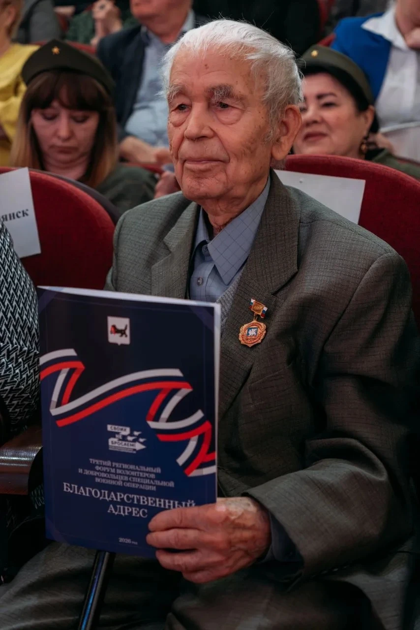 В завершении мероприятия Александр Ермаков поздравил руководителя фольклорного ансамбля «Лучинушка» Виктора Бондаря с 70-летним юбилеем. Также в честь трехлетия работы волонтерского объединения «МаскСетиСаянск68» его участники были отмечены благодарственными адресами от губернатора и мэра, памятными знаками «Доброволец Иркутского тыла».
