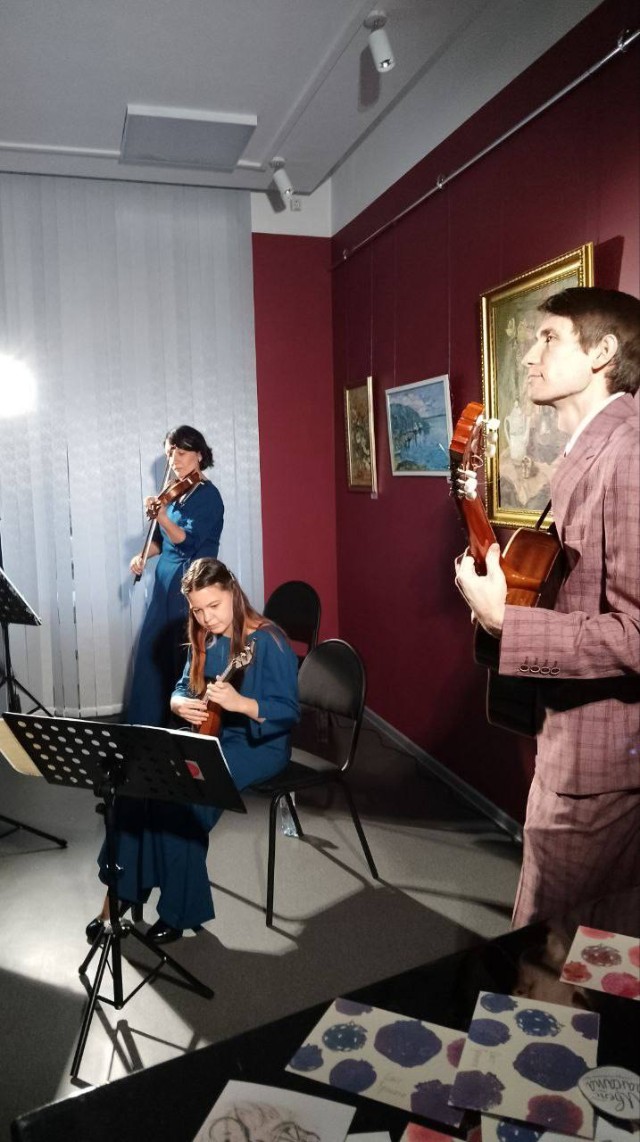 Великолепные чарующие мелодии звучали в стенах картинной галереи: своё мастерство представили музыканты инструментального трио «Цвет граната".