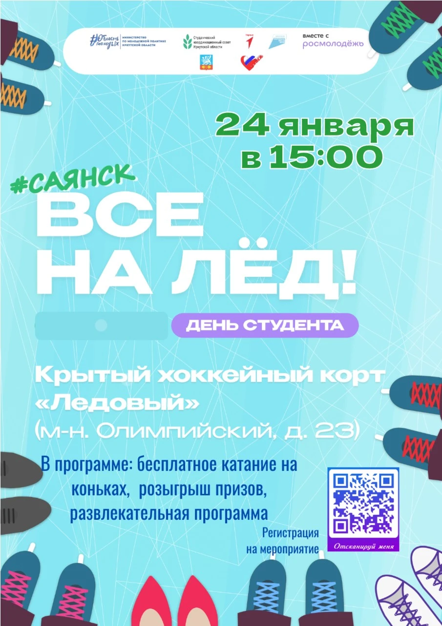 Администрация г. Саянска поздравляет вас с наступающим праздником - Днем студента и приглашает на акцию "Все на лёд"