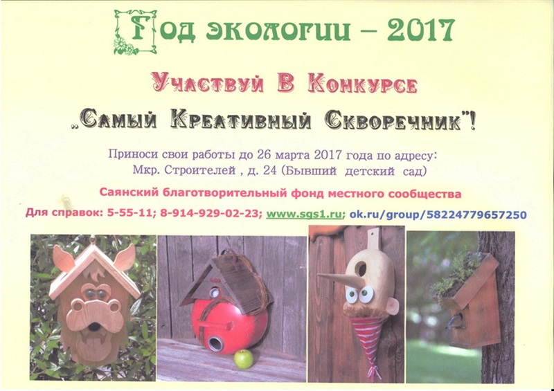 Саянский благотворительный фонд местного сообщества объявляет конкурс на создание самого креативного скворечника