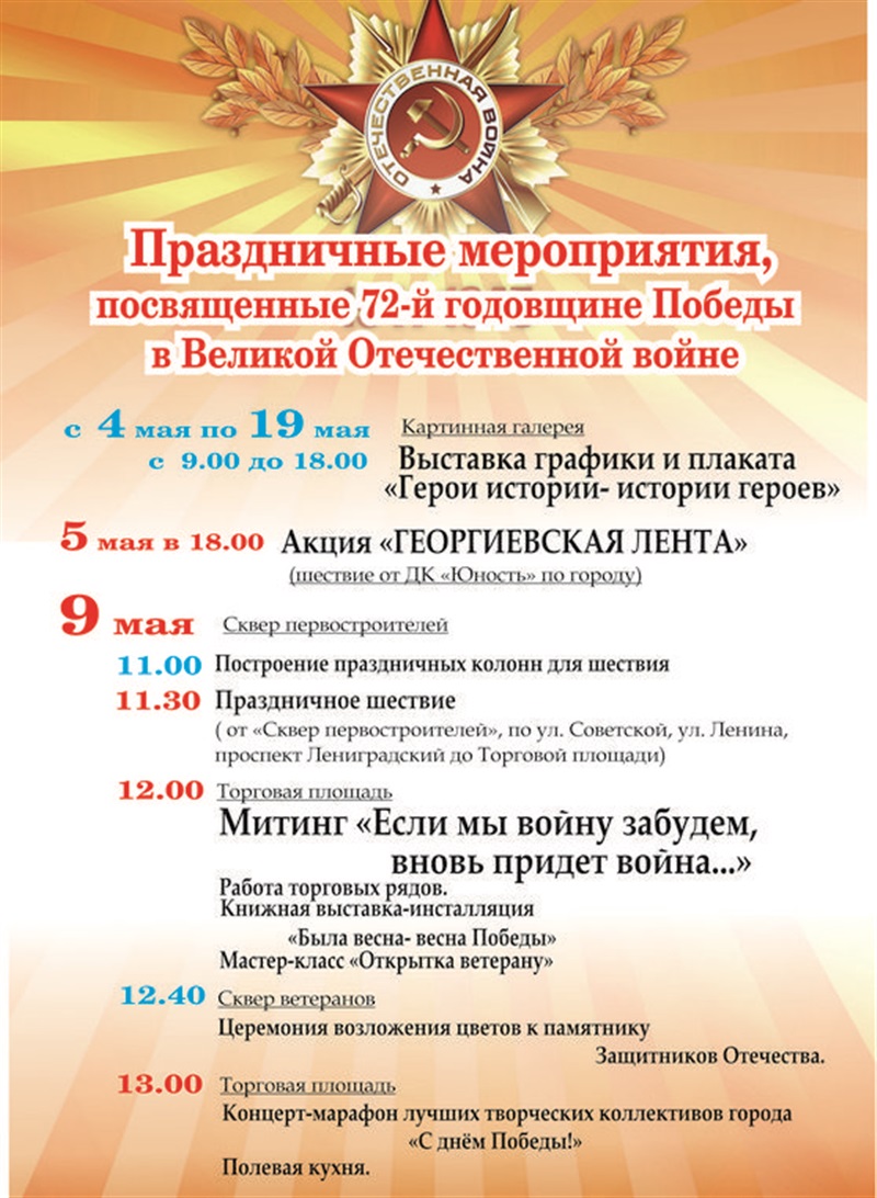 Праздничные мероприятия, посвященные 72-й годовщине Великой Победы