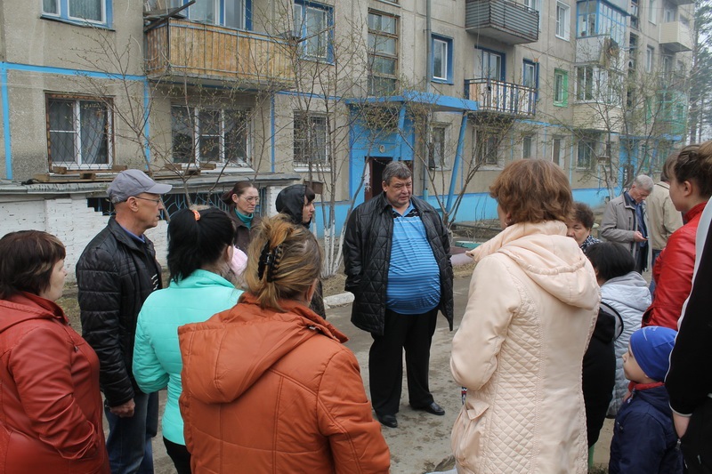 Мэр Саянска Олег Боровский провел рабочее совещание с выездом в микрорайон Промбаза, где 28 апреля произошел пожар в жилом доме