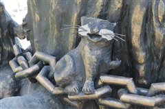 У Лягушки отбит кусок лапы, У Ивана-царевича – кусочек воротника, у Бабы-Яги поцарапан нос, повредили фигурки Вовки из Тридевятого царства (композиция «Двое из ларца») и кота из Лукоморья.