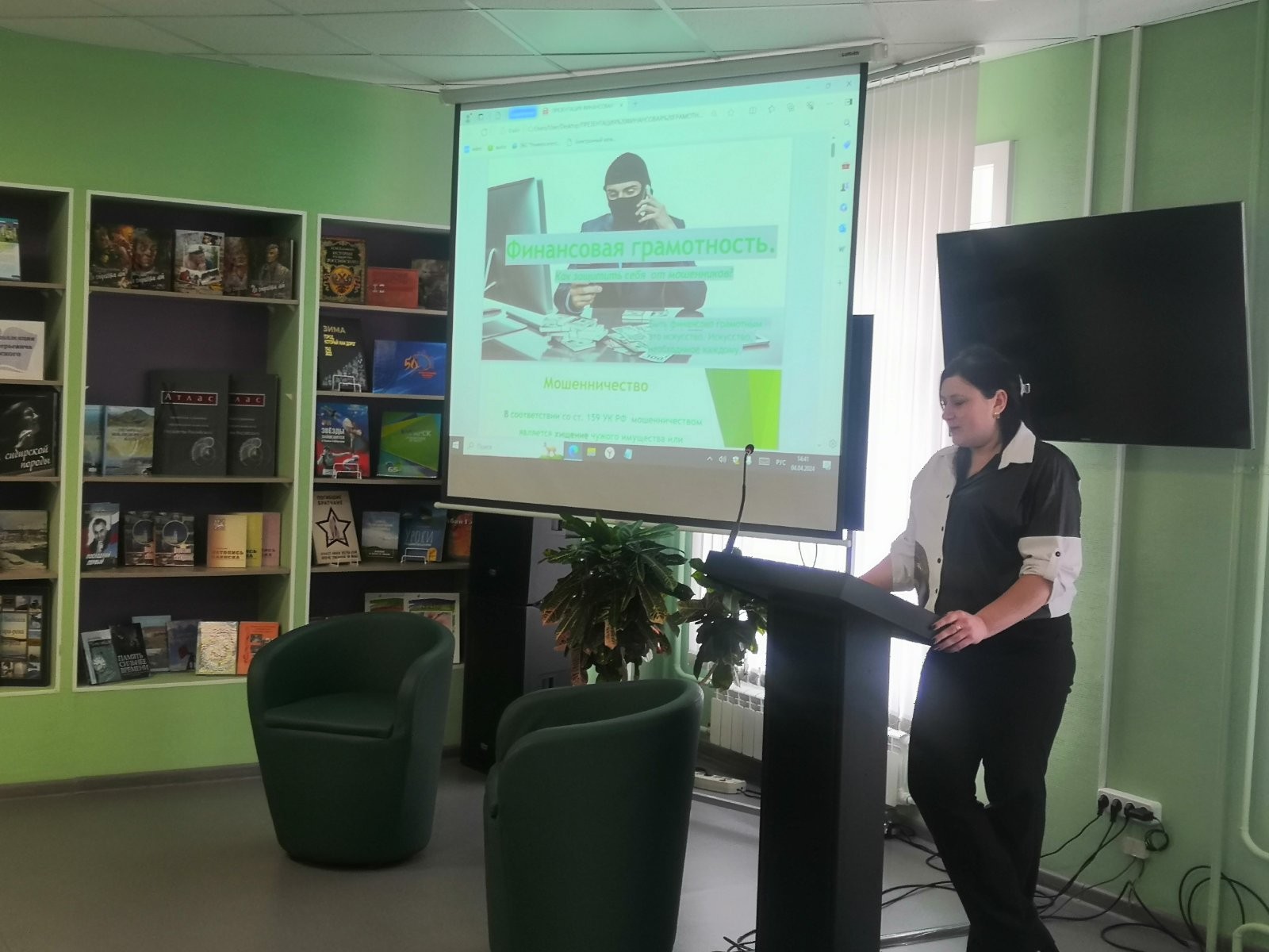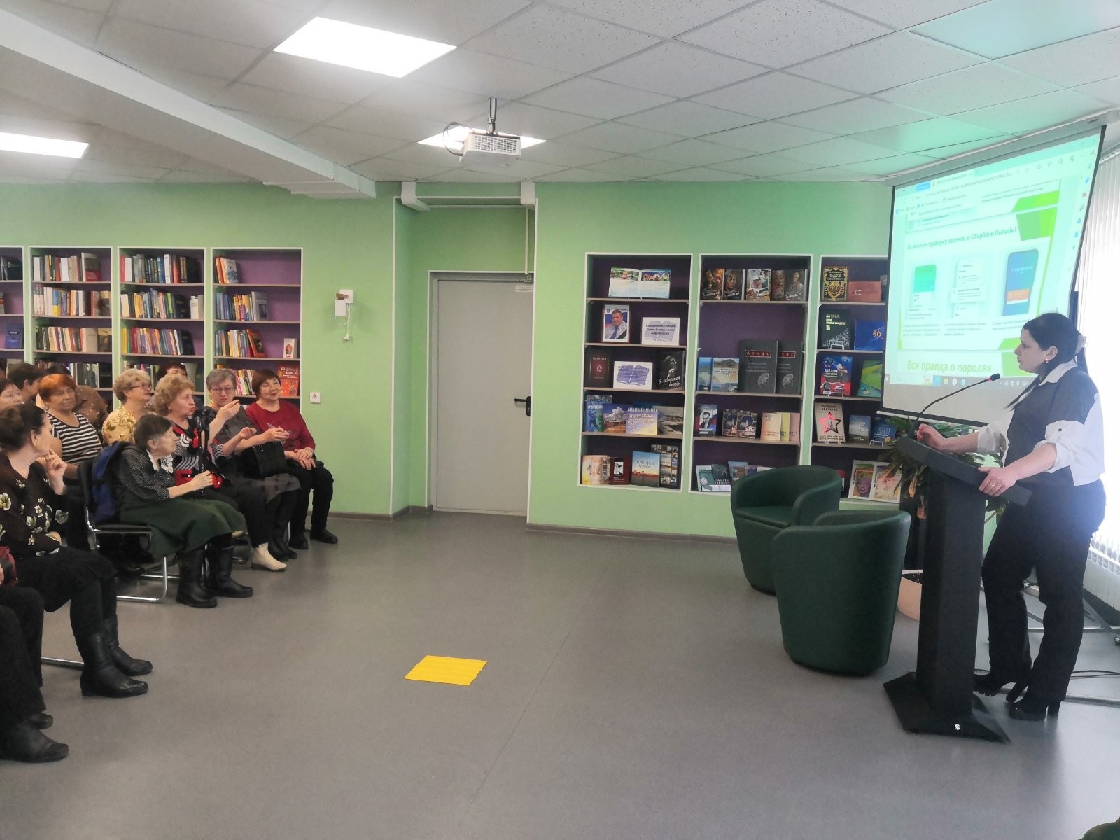 4 апреля 2024года в Централизованной городской библиотеке в рамках реализации государственной программы Иркутской области «Повышение финансовой грамотности населения Иркутской области» прошла встреча активных пенсионеров города Саянска с сотрудниками ПАО «Сбербанк» тема «Как защитить себя от мошенников». Познавательный доклад сотрудников банка завершился вопросами слушателей.