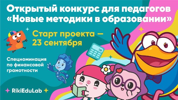 Конкурс «Новые методики в образовании» для педагогов и воспитателей, инициированный ГК «Рики», при поддержке НИУ ВШЭ, НИФИ Минфина России, РГПУ им. А.И. Герцена, а также экспертов некоммерческой организации Обрсоюз и онлайн школы ИнтернетУрок.
