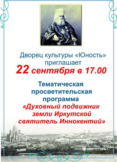 Приглашаем на тематическую просветительскую программу "Духовный подвижник земли Иркутской святитель Иннокентий"