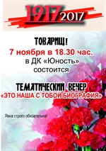 7 ноября в ДК "Юность" тематический вечер "Это наша с тобой биография"