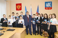 − Сегодня вы получаете самый важный ваш документ, который в любой точке мира будет говорить о том, что вы гражданин великой страны – Российской Федерации, − сказал Олег Валерьевич. − Он дает вам широкие возможности, но одновременно возлагает на вас большую ответственность. Хочу пожелать вам успехов в учебе, хорошего настроения, светлой и долгой дороги в вашей жизни, пусть вам всегда сопутствует удача.