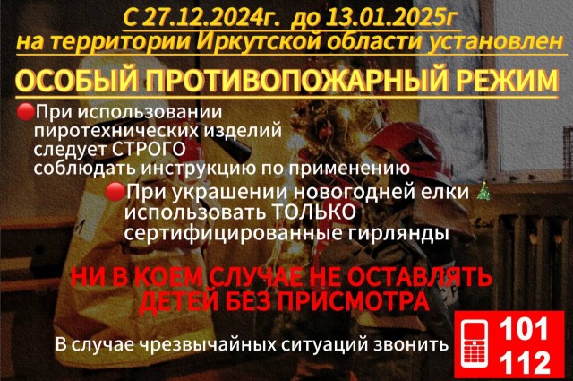 Введён особый противопожарный режим с 27 декабря 2024г. с 8:00 часов до 8:00 часов 13 января 2025 года