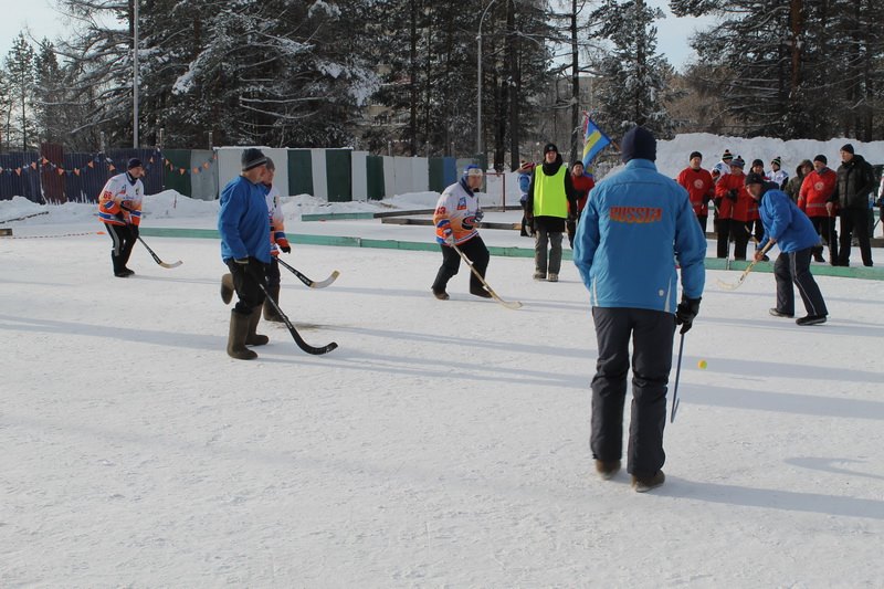 На два поля вышли первые четыре команды, определившиеся по жеребьевке, а полевая кухня угощала всех желающих душистой гречневой кашей с тушенкой и горячим чаем. Несколько часов на полях проходили азартные хоккейные баталии. Если кто-то думает, что в валенках играть легче, чем в коньках на льду, то он ошибается – неудобная для игры обувь скользила не хуже коньков, а мячи так и норовили ускакать за пределы площадки. Болельщики активно поддерживали команды – каждый забитый в ворота мяч сопровождался одобрительными криками и звуками дудок.