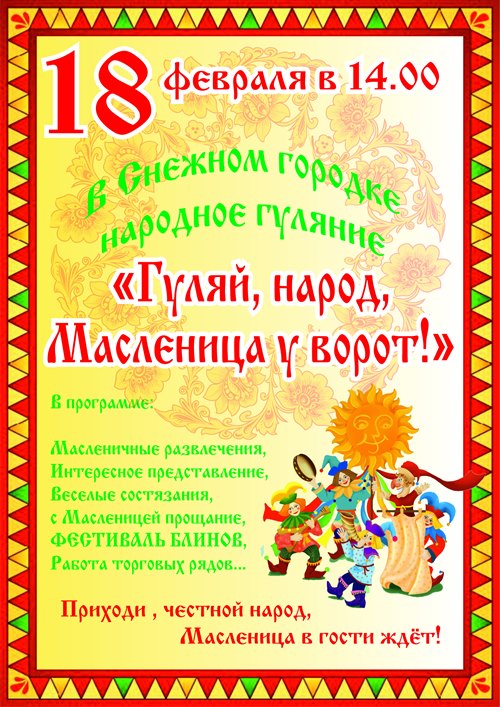 18 февраля - "Гуляй, народ, Масленица у ворот"