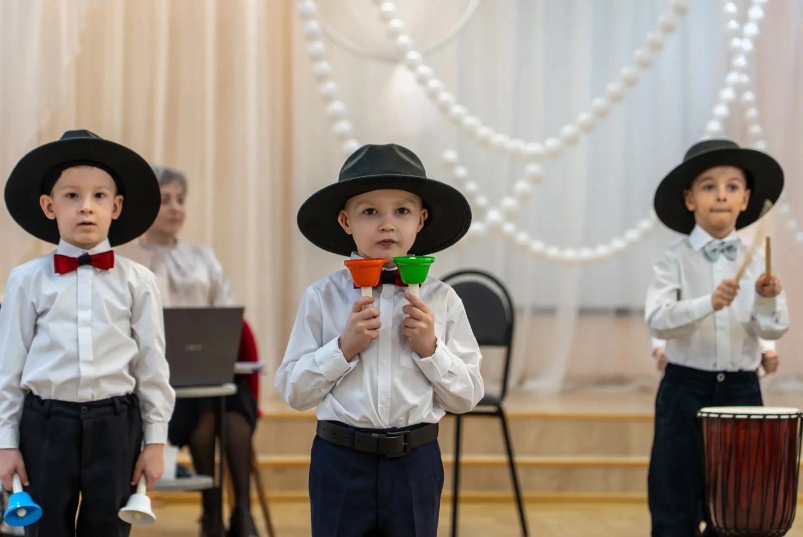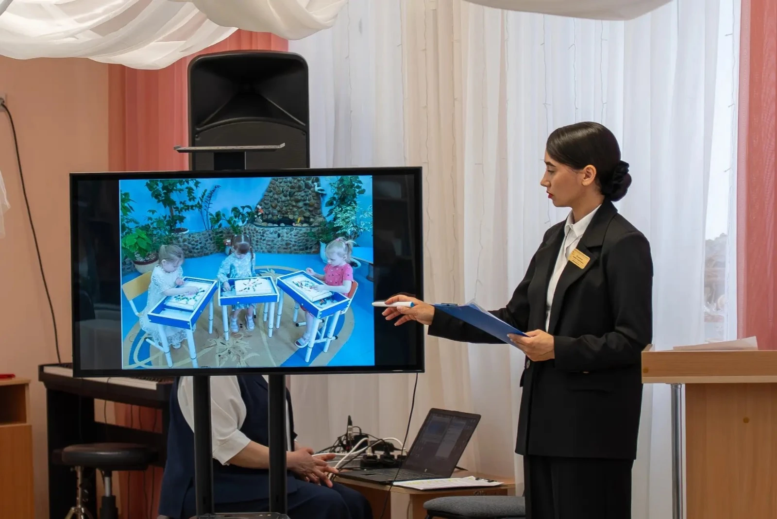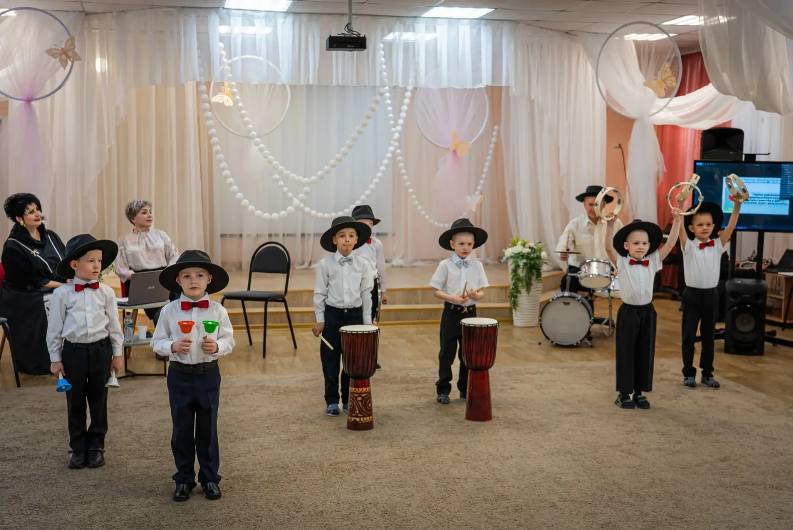 Воспитанники «Дюймовочки» показали взрослым те упражнения, которые они выполняют во время занятий физкультурой. Также на семинаре выступил оркестр маленьких барабанщиков, наглядно продемонстрировав пользу коллективного творчества для эмоционального развития и социализации.