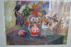 В фойе учреждения размещены лучшие работы юной художницы. Тематика работ разноплановая: пейзажи, сюжетные картины и натюрморты. В них Полина использует карандаш, акварельные и гуашевые краски.