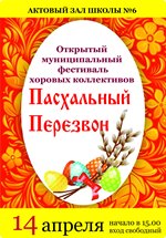 Заявки на участие в фестивале «Пасхальный перезвон» уже подали хоровые коллективы образовательных учреждений города, детской музыкальной школы, взрослые хоровые коллективы, детские и взрослые вокальные ансамбли.