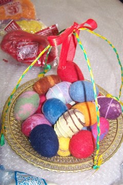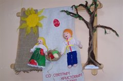 На открытие организаторы провели мастер-класс по изготовлению пасхальных яиц в технике валяния из шерсти. В основу изделия взята заготовка, которую обернули кусочками разноцветной шерсти. Получилось несколько пасхальных яиц.