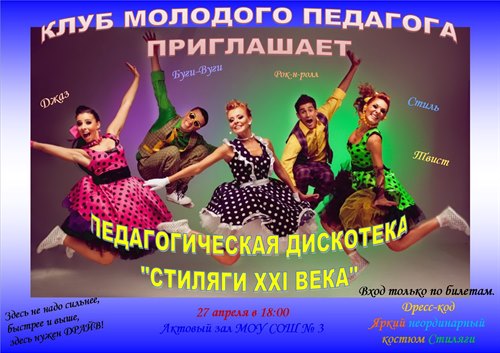 Клуб молодого педагога приглашает на педагогическую дискотеку "Стиляги XXI века"