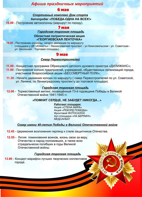 Афиша праздничных мероприятий, посвященных Дню Победы
