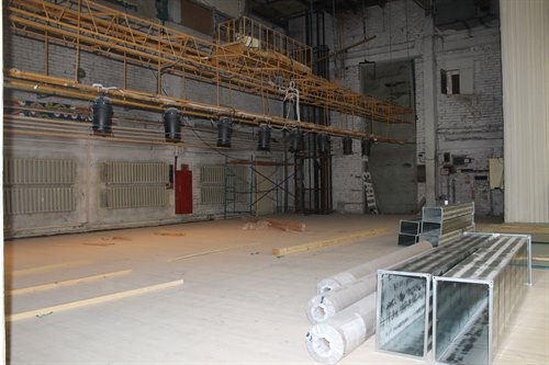 Идет капитальный ремонт ДК «Юность». Владимир Дьяконов, заместитель руководителя МУ «Служба подготовки и обеспечения градостроительной деятельности» рассказал, что к настоящему времени заменены инженерные сети водопровода и канализации, трубопроводы пожаротушения, ведется монтаж приточно-вытяжной вентиляции и системы электроснабжения. Выполнено новое деревянное покрытие пола на сцене дворца культуры. Оно будет пропитано специальным составом и покрыто лаком. На втором этаже здания заменен пол в хореографическом зале, в кинооператорской и в коридоре, под укладку линолеума подготовлены полы во всех кабинетах.