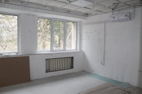 На этой неделе, если позволит погода, планируется начать работы по ремонту фасада и кровли. К устройству витражей на фасаде уже приступили.