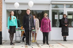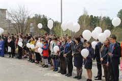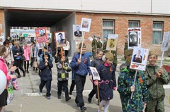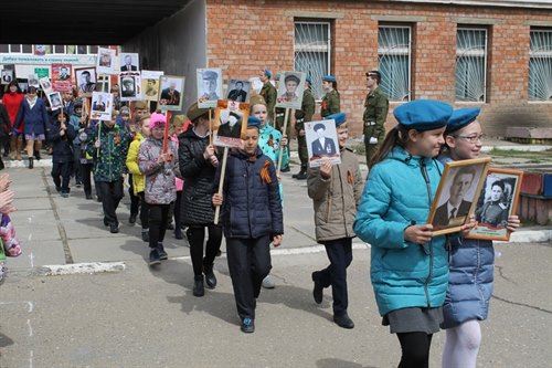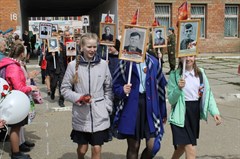 На торжественный митинг, посвященный празднованию Великой Победы, собрались сегодня учителя и ученики школы №4. Митинг прошел у памятника герою Советского Союза Дмитрию Перову, чье имя носит школа. «Нет в России семьи такой, где б не памятен был свой герой» – в школе зародилась новая традиция: митинг открылся шествием подразделения Бессмертного полка школы. Ребята шагали, бережно держа в руках портреты своих родных, принадлежавших к легендарному поколению тех, кто ковал победу. Ученики школы предварительно провели большую поисковую работу, собрано более двухсот историй о героях, которые войдут в архив музея.