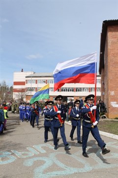 Завершился митинг минутой молчания и торжественным маршем юнармейцев школы.