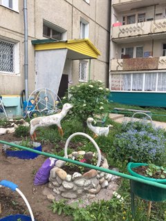 Жители микрорайона Центрального «покреативили» и соорудили во дворе водоем. Татьяна Вожжова и Галина Зинчук каждое лето благоустраивают двор своего дома №4. Клумбы с яркими цветами радуют глаз жильцов дома. Для новой композиции энтузиастки приобрели пластиковые кашпо, и надеются, что саянцы оценят их труд по достоинству, будут бережно относиться к их стараниям. А самое главное – последуют их примеру.