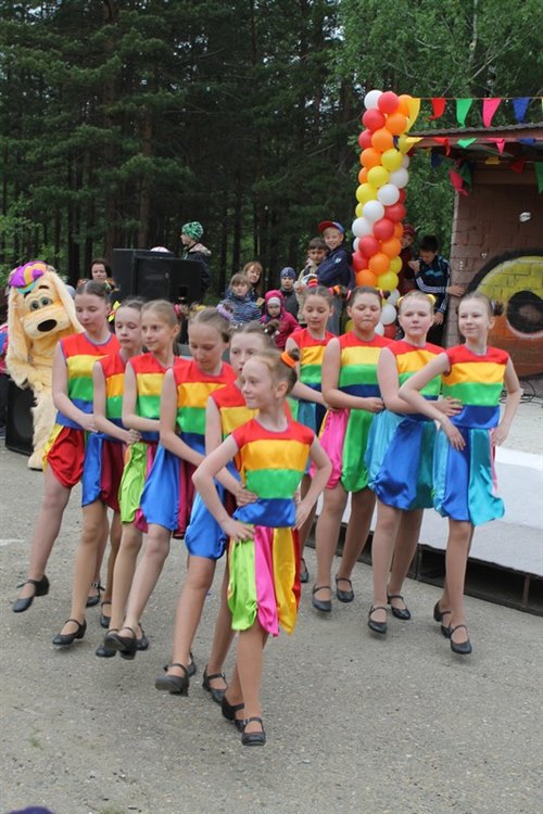 Прохладная погода не помешала маленьким саянцам весело отметить День защиты детей. На площадке у фонтана прошла праздничная программа «Маленькие дети на большой планете».