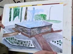 Лето для художника – самое лучшее время, чтобы, прихватив с собой этюдник, направиться по живописным местам. Сегодня на пленэр к городскому фонтану вышли ребята из художественной школы. В ярких лучах солнца фонтан искрится и переливается, его брызги рисуют радугу. Но сегодня ребятам не повезло с погодой. Небо затянуто тучами, накрапывает дождик. Однако настоящему творцу любые невзгоды нипочем, если приходит вдохновение. Оно не зависит от капризов погоды. Светит ли солнце, дует ли ветер – кисть как будто сама бежит по полотну, с каждым мазком делая мир краше.