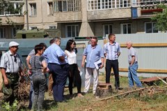 В график объезда также вошли дворы микрорайона Юбилейного – домов №29 и №18. Оба двора находятся на стадии ремонта. Олег Боровский проверил, соответствуют ли выполняемые работы намеченному проекту, нет ли отклонений.