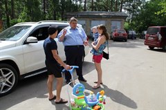 Далее глава города лично проверил обоснованность поступившей от жителей дома №11 микрорайона Солнечного жалобы. Жители выразили претензию по поводу неработающей карусели на детской площадке и нескошенной травы. Мэр дал поручение управляющей компании исправить ситуацию до пятницы, 22 июня. Кроме того, компании «Уют» поручено покрасить малые формы на детской площадке, привести двор в надлежащий порядок.