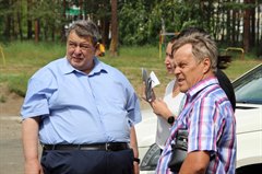 Олег Валерьевич проконтролировал ход ремонтных работ еще в нескольких саянских дворах. Так, во дворе дома №6 микрорайона Солнечного проведены подготовительные работы для асфальтирования дворового проезда. Мэр провел переговоры с директором управляющей компании «Уют» Клавдией Константиновой, поинтересовался проблемами, возникающими при проведении работ, и требующими вмешательства мэра.