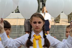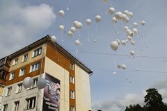 Почетное право открыть стену памяти было предоставлено мэру города Олегу Боровскому и председателю совета ветеранов Татьяне Огневой. В знак памяти великому подвигу героев, саянцы возложили цветы к мемориалу, а в небо выпустили белые шары – символ памяти и скорби.