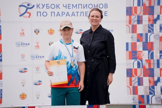 Екатерина Потапова завоевала золотую медаль на дистанции 100 м. в гонках на спортивных колясках, а также серебряную медаль в дисциплине метание диска.