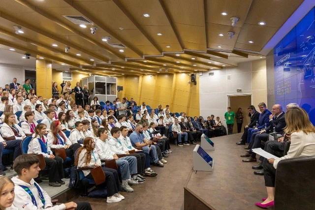 Дмитрий Чернышенко, Анатолий Серышев, Юрий Чиханчин и Михаил Котюков поприветствовали представителей российской сборной олимпиады, а также пообщались со школьниками на «Разговорах о важном».