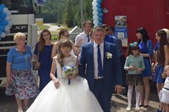 Накануне Дня семьи, любви и верности саянская пара молодых людей устроила необычную свадьбу. Молодожены приехали в загс на грузовиках. Действительно, белоснежным лимузином нынче уже никого не удивишь, поэтому новобрачные Юлия и Игорь Тетерины пошли против стандартов.
