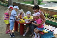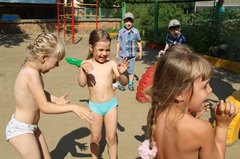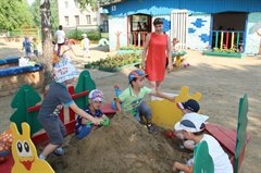 Сегодня − солнечный денек, а завтра будет день мыльных пузырей, потом построим замки из песка и непременно поиграем в футбол, а еще поищем в траве кузнечика и сплетем венок из одуванчиков – каждый день в детском саду №21 «Брусничка» особенный. Забавные игры, рисование, конкурсы и развлечения, веселы старты и задорные песни. Лето в детском саду – это волшебное время чудес, прекрасного настроения, солнца и радости. Только летом можно увидеть как растет цветок, посаженный своими руками, побегать по лужам под теплым дождем, а потом полюбоваться прекрасной радугой-дугой, которая появляется над головой. Только летним утром по траве рассыпается утренняя роса, ее блеск похож на драгоценные камни. Пчелка-труженица спешит по своим медовым делам, торопится собрать ценный нектар. Вся природа оживает, наряжается в красивые наряды, наслаждаясь теплом солнечных лучей.