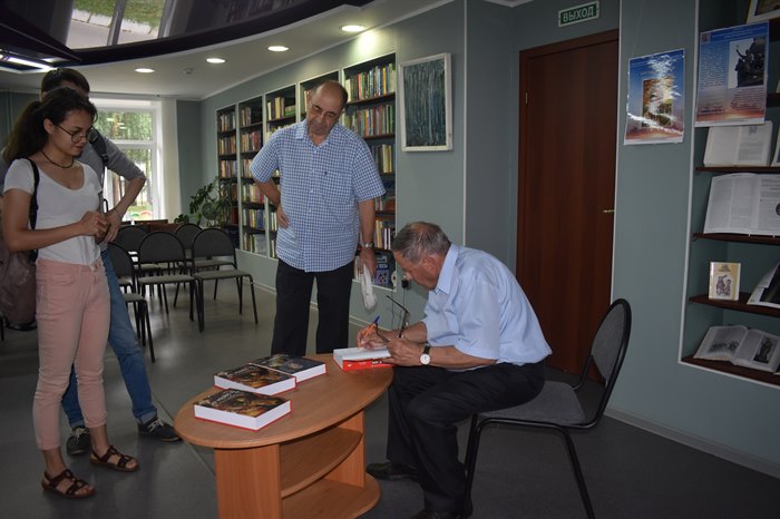 Сегодня в читальном зале городской библиотеки состоялась творческая встреча с евтушенковедами Валерием Прищепой и Виталием Коминым. Накануне юбилейной даты знаменитого поэта писатели презентовали свою новую книгу, посвященную жизни и творчеству Евгения Евтушенко. Как рассказали гости, они с радостью отправились в небольшое путешествие по Иркутской области, начали его с Зимы, в Саянске состоялась вторая встреча с читателями. Четвертая книга о поэте носит то же название, что и предыдущие – «По ступеням лет». Содержит множество документов, в том числе рассекреченных. Объем книги – 650 страниц, на каждой по 15-16 фактов из жизни поэта, до сих пор неизвестных читателям.
