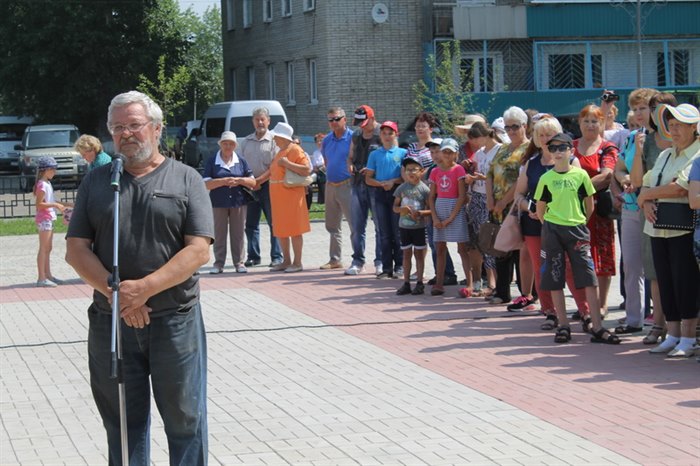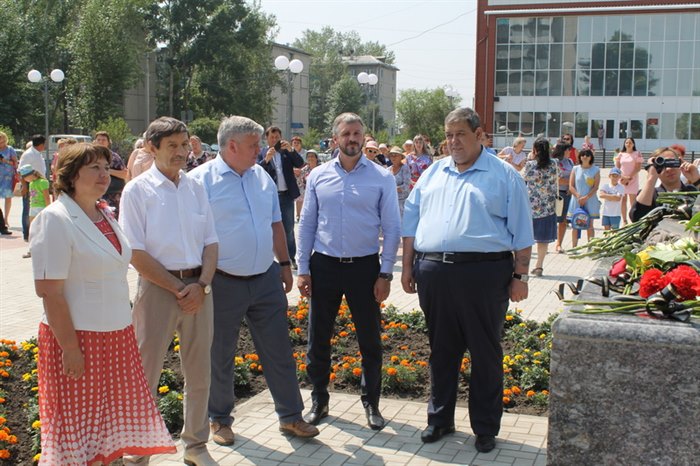 Памятник открыли Андрей Коновалов, мэр Зимы и скульптор Евгений Скачков, автор и создатель памятника.